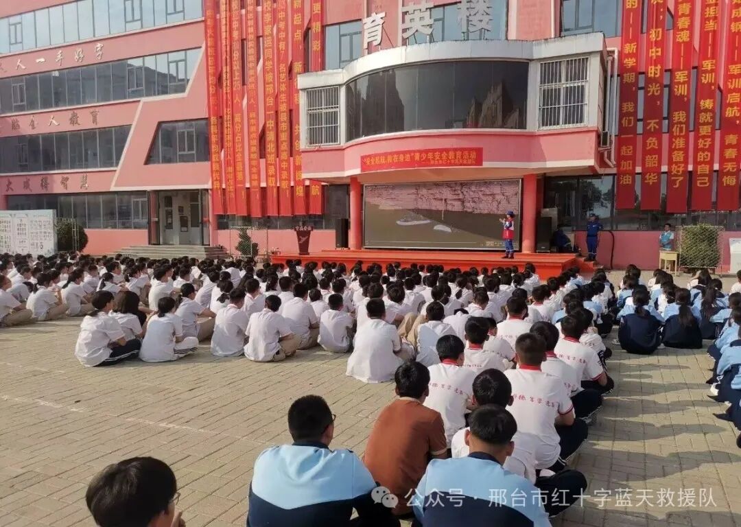 邢台红十字蓝天救援队将不断通过不同形式,用一堂堂干货满满的“安全教育宣讲课程”在孩子们心中种下安全种子,切实筑牢校园安全防线。